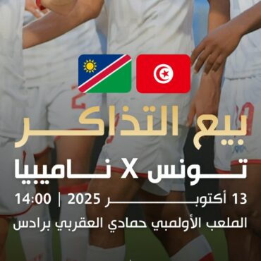 insert_link رياضة الجامعة التونسية لكرة القدم تعلن عن طرح تذاكر لمباراة تونس و ناميبيا ضمن التصفيات today12 أكتوبر 2025