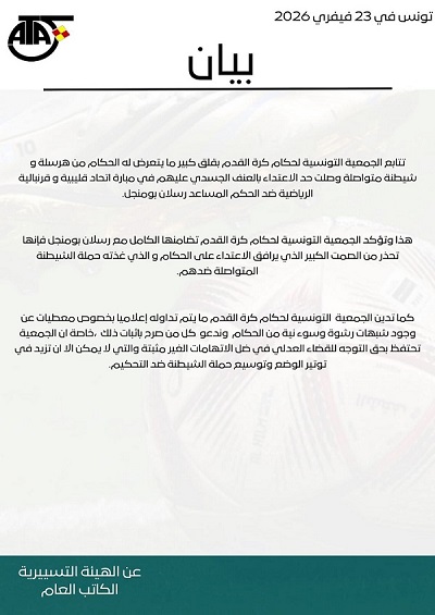 insert_link Non classé الإفراج عن أحمد صواب قضت الدائرة الجنائية بمحكمة الاستئناف بتونس، اليوم الإثنين، نهائيا، باقرار الحكم الابتدائي الصادر في حق المحامي والقاضي الإداري السابق أحمد صواب، في خصوص جريمة الأولى وهي “التهديد بما يوجب عقابا جنائياالمرتبطة بجريمة ارهابية ” بتعديل نصه والحط من العقاب البدني إلى 10 اشهر، وفق ما أكّده مصدر قضائي لوكالة تونس إفريقيا للأنباء . و أقرت في خصوص الجريمة الثانية وهي “تعريض حياة اشخاص معنيين بالحماية الى الخطربالافصاح عن أي معطيات […] today23 فبراير 2026