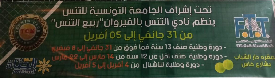 insert_link رياضة تظاهرة رياضية وطنية تحت عنوان “ربيع التنس” تحت إشراف الجامعة التونسية للتنس، ينظم نادي التنس بالقيروان تظاهرة رياضية وطنية تحت عنوان “ربيع التنس”، وذلك خلال الفترة الممتدة من 31 جانفي إلى 05 أفريل، بمقر دار الشباب شارع ماس. ويتضمن البرنامج تنظيم ثلاث دورات وطنية موجهة لمختلف الفئات العمرية، حيث تفتتح التظاهرة بـ دورة وطنية لصنف 13 سنة فما فوق من 31 جانفي إلى 08 فيفري، تليها دورة وطنية لصنف أقل من 12 سنة من 14 مارس إلى […] today1 فبراير 2026