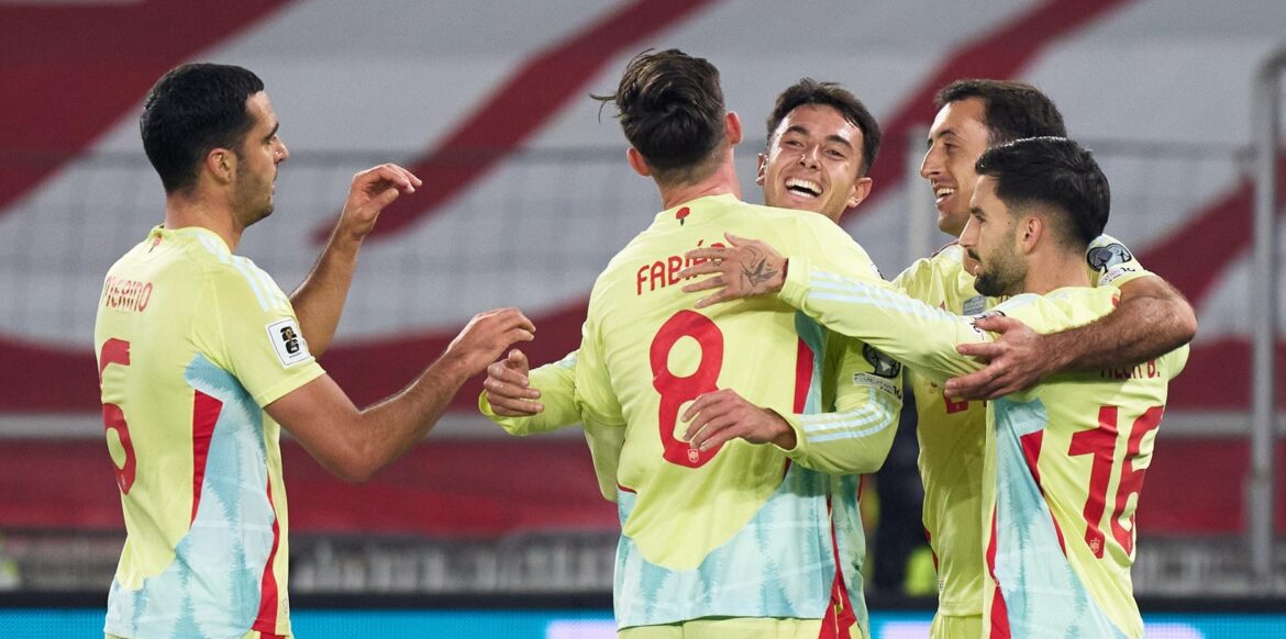 insert_link رياضة التصفيات الأوروبية المؤهلة لكأس العالم : إسبانيا تمطر شباك جورجيا برباعية نظيفة في إطار الجولة الخامسة من منافسات المجموعة الخامسة للتصفيات الأوروبية المؤهلة لكأس العالم 2026 حقق المنتخب الإسباني إنتصارا كبيرا أمام منتخب جورجيا برباعية نظيفة تداول على تسجيلها كل من مهاجم ريال سوسيداد ميكيل أويارزابال في الدقيقتين 11 و 63 , متوسط ميدان نادي أرسنال مارتين زوبيمندي في الدقيقة 22 و لاعب نادي برشلونة فيران توريس في الدقيقة 34 إنتصار رفع به المنتخب الإسباني رصيده ل 15 نقطة في المركز الأول […] today16 نوفمبر 2025